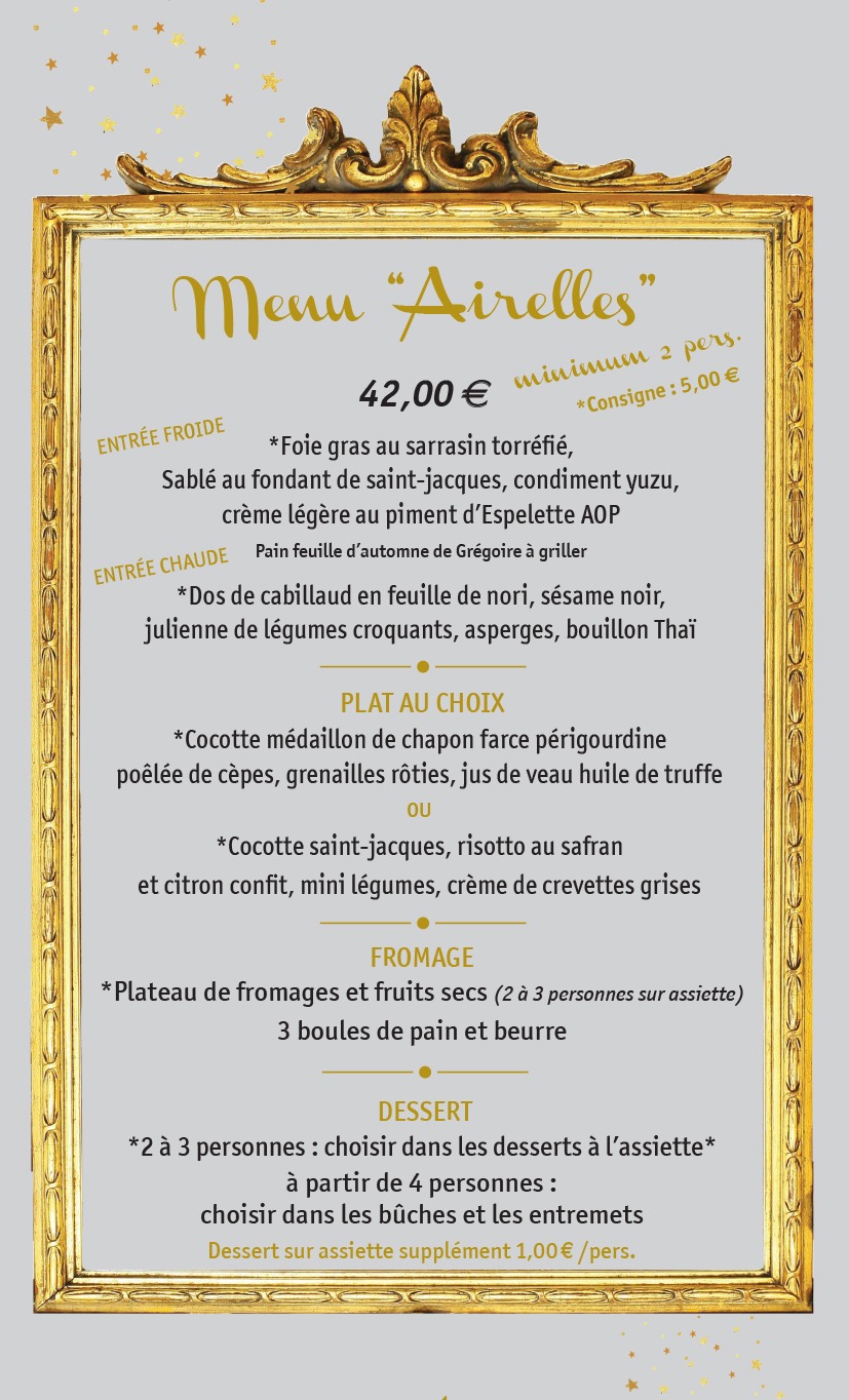 - Consigne de 5 €/pers pour l'entrée chaude par personne