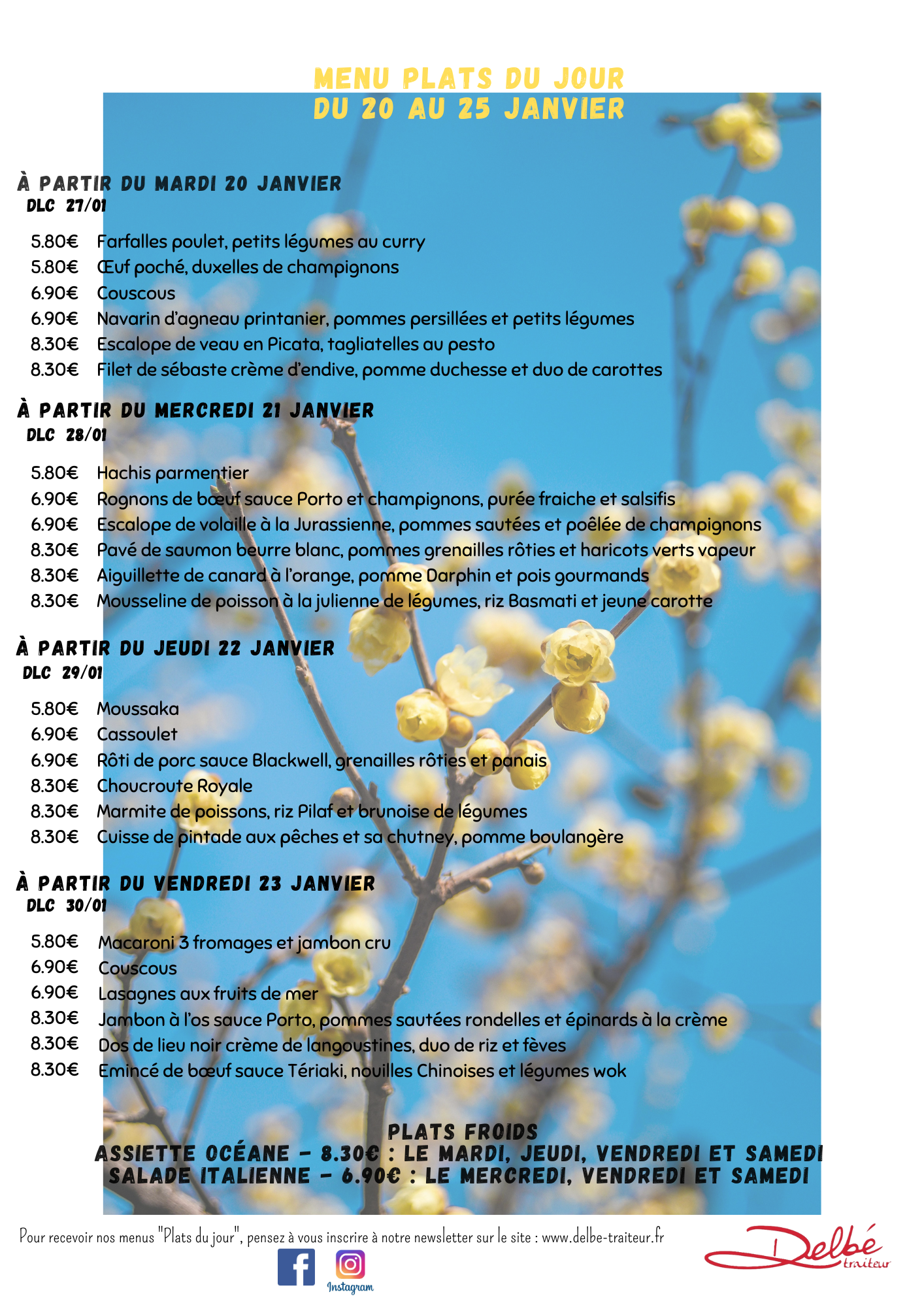 Pour recevoir nos menus "PLAT DU JOUR" chaque semaine sur votre boite MAIL,