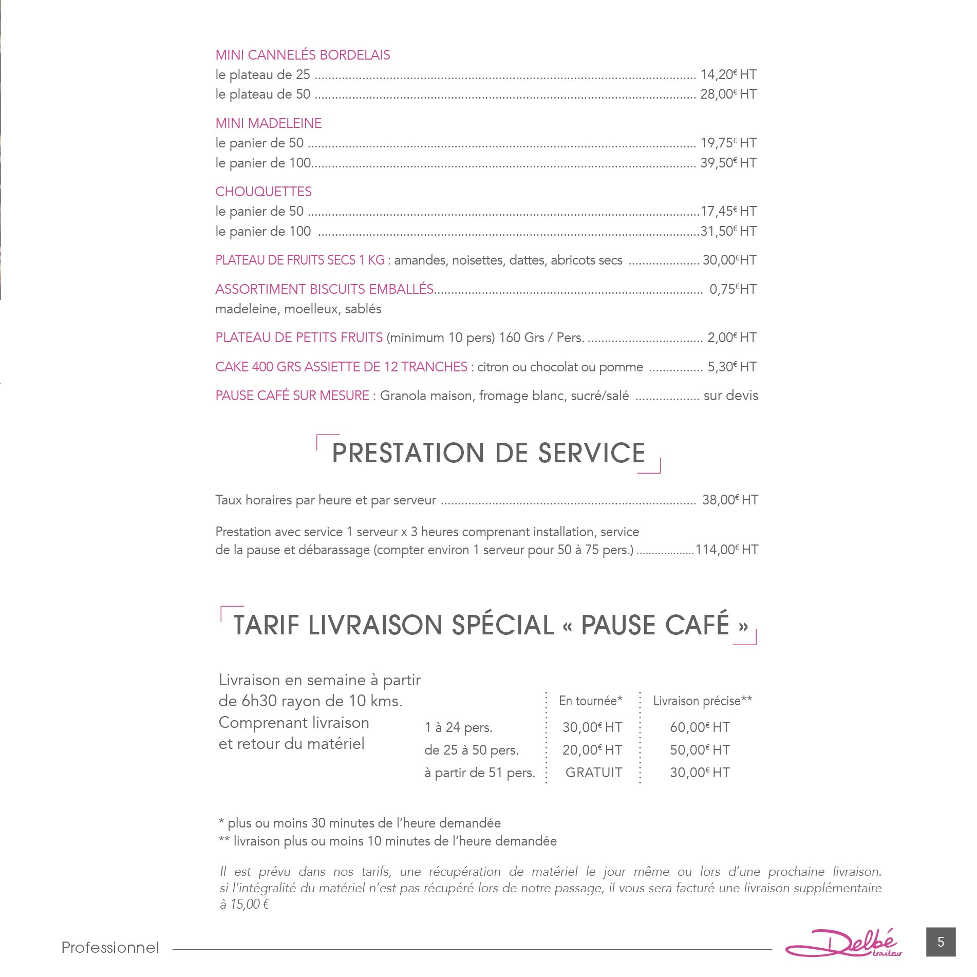 PRIX HT côté carte PRO (plateaux repas - buffet ...)